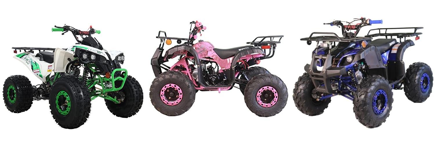 The X-PRO ATV 4 wheelers (Pink Camo) is a fun and safe ATV for young riders. This 125cc four-wheeler is a great starter ATV. It has a powerful engine and easy-to-use features. It also includes safety features like a remote control and speed limiter. This ATV will give kids hours of outdoor fun.