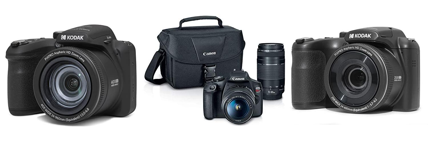 The Canon EOS Rebel T7 DSLR Camera is a great choice for new photographers. This kit comes with two lenses. You get both the EF18-55mm and the EF 75-300mm lenses. It has a 24.1-megapixel sensor. This camera can take great photos and videos. It also has features like built-in Wi-Fi and NFC. This makes it easy to share your pictures.