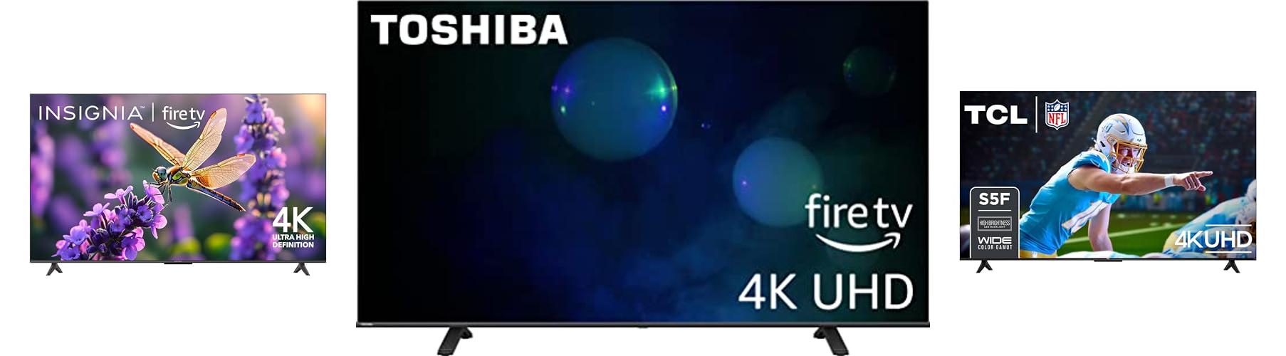 The TOSHIBA 65-inch Class C350 Series LED 4K UHD Smart Fire TV (65C350LU, 2023 Model) is a smart TV. It has a big 65-inch screen. It uses Fire TV, so it is easy to use. You can stream movies and shows. It also has a voice remote with Alexa. This TV is a good pick if you want a great picture and easy access to your favorite shows.