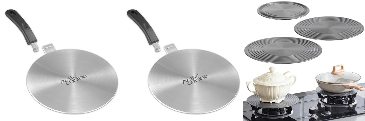 The ACTIV CUISINE 7.9 Inch Heat Diffuser is a versatile kitchen tool that helps you cook better. It works on gas, glass, and induction cooktops. This adapter makes it possible to use almost any pot or pan on your stove.