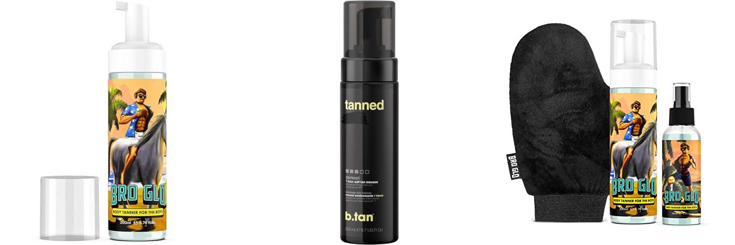 1. Bro Glo Self Tanner for The Boys – Quick Application Foam Mousse Easy Sunless Tan For Face and Body Oil Free Water Based Faster Skin Drying Natural Sun Kissed Bronze Color Perfect Men 6.76 FL oz