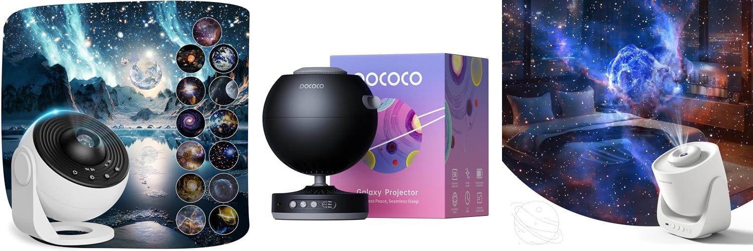 2. POCOCO Galaxy Star Projector for Bedroom with Replaceable Optical Film Discs