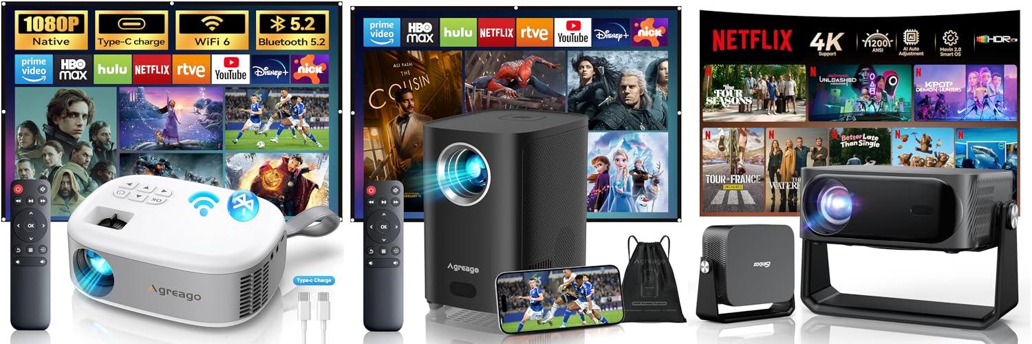 Get ready for an amazing movie experience with the Agreago Outdoor Movie Projector. This projector brings the big screen right to your home or backyard. It’s packed with features that make watching movies, shows, or playing games super fun and easy.