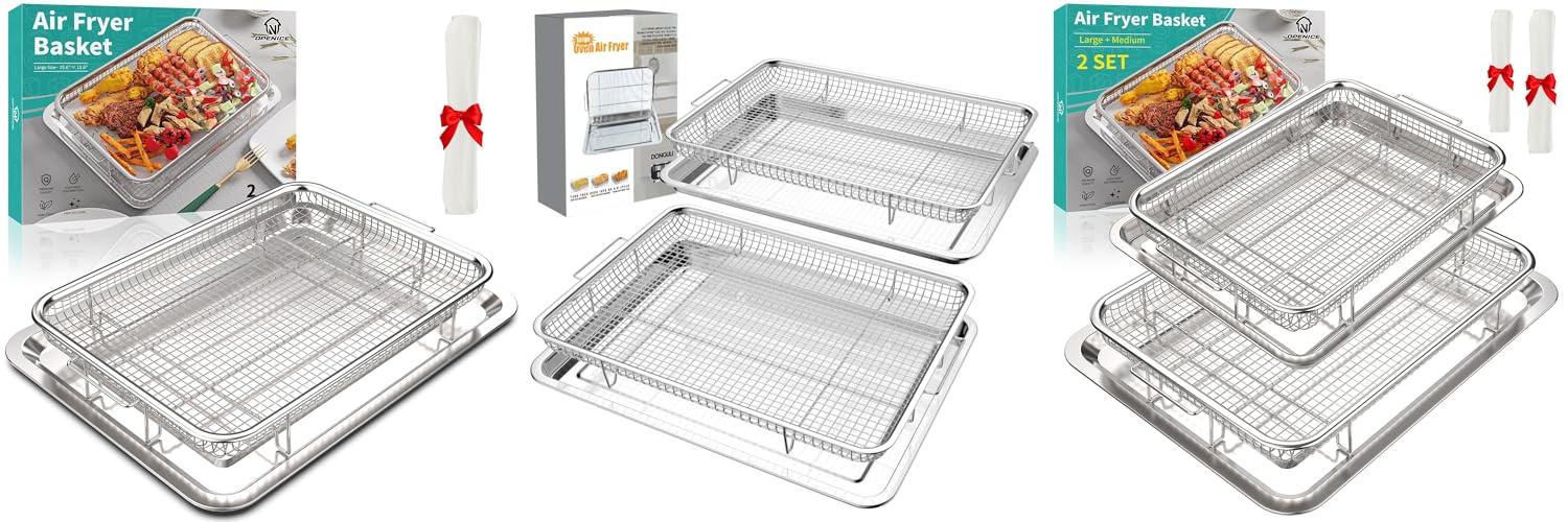 Unlock healthier, crispier meals with the OPENICE 2 Set Air Fryer Basket and Tray for your oven. This versatile set is designed to help you cook delicious food with less oil, making it a fantastic addition to any kitchen.