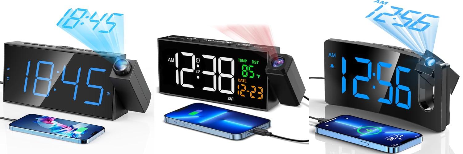 1. Digital Projection Alarm Clocks for Bedrooms – Large LED Display
