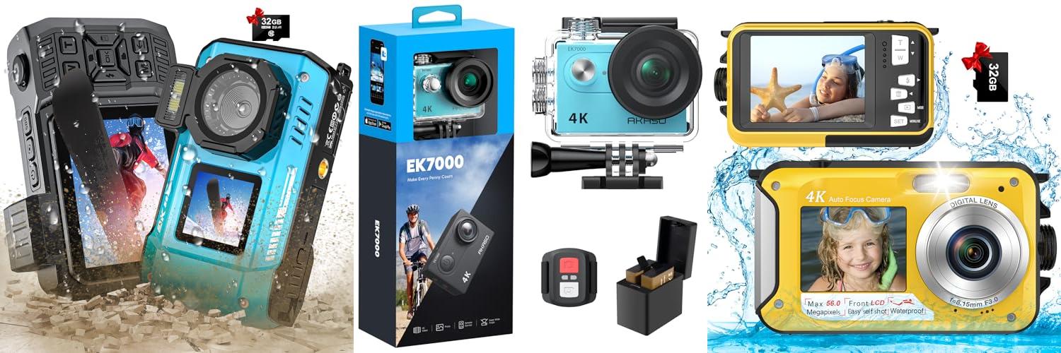 The AKASO EK7000 is a 4K action camera. It takes amazing photos and videos. This camera is great for capturing your adventures. It records in 4K at 30 frames per second. It also takes 20MP photos. This camera comes with a waterproof case. You can take it up to 131 feet underwater. It includes a remote control and Wi-Fi.