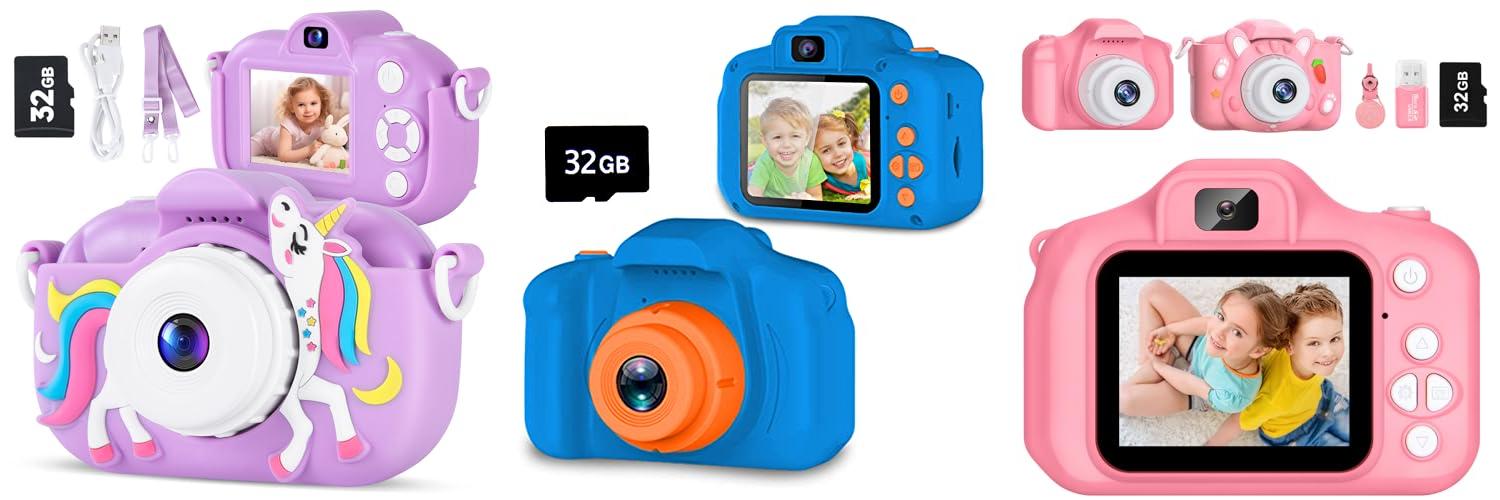 The Kids Camera Digital Camera is a fun toy for children ages 3-8. This camera helps kids take pictures and videos. It has two lenses, so kids can take selfies. It also comes with a 32GB SD card to store pictures. The camera offers fun games and a music player. It also has stickers and frames to make photos more creative. This camera is a great gift for birthdays and Christmas.