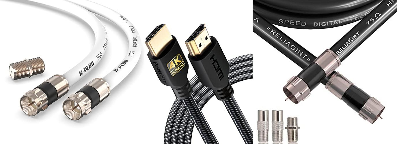 3. RELIAGINT 30ft TV Cable Wire Black RG6 Coaxial Cable with F Connector